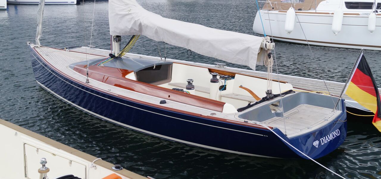 Daysailer aus dem Jahr 2010Handlicher, einhand-tauglicher und wunderschöner Daysailer mit klassischen Linien von der Französischen Werft Latitude 46 Classic Yachts Construction. So traditionell und klassisch die Tofinou 8.0 m auf den ersten Blick sein mag, so modern sind ihr Unterwasserschiff und das Rigg. Tiefe, effektive Anhänge, ein schlankes Vorschiff und das flach nach achtern auslaufende Unterwasserschiff sowie ein hohes Rigg mit High Aspect Selbstwendefock und viel Fläche im Großsegel verleihen der Tofinou 8.0 m sportliche Segeleigenschaften und Segelspaß. Das Layout des Daysailers ist konsequent auf Einhand-Segeln ausgelegt. Die Selbstwendefock und die Führung aller Schoten, Strecker und Fallen auf die beiden Winschpodeste direkt vor der Pinne ermöglichen es, alle Manöver vom Steuerstand aus zu fahren. Diese Tofinou 8.0 m kommt vom ersten Eigner und ist komplett ausgerüstet. Version mit T-förmigem Festkiel (Tiefgang: ca. 1,70 m).