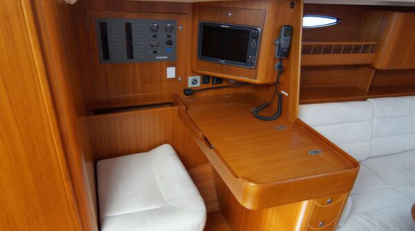 - Kartentisch in Fahrtrichtung eingebaut an Backbord achtern