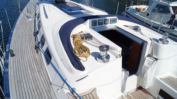Performance-Cruiser aus dem Jahr 2004Gepflegter, gut ausgerüsteter Performance-Cruiser von der dänischen Werft X-Yachts mit hervorragenden Segeleigenschaften. Die X-43 ist ein Hingucker mit flachem Aufbauprofil, eleganten Linien, und einem aufgeräumten Deck. Konstruktion: Niels Jeppesen. Sehr steife und verwindungsfreie Bauweise mit Strongback aus verzinktem Stahl zur Aufnahme der Lasten von Kiel, Mastfuß und Wanten. Das ergonomische Deckslayout mit freien Laufflächen und Deutschem Großschotsystem prädestiniert die Yacht nicht nur zum sportlichen Segeln, sondern erleichtert auch kleinen Crews das Handling. Umfangreiche Standardspezifikation mit hochwertiger Beschlagsausstattung und hohes, schlankes Rigg mit drei Salingspaaren und Rod-Rigg.