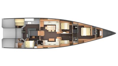 Grand Soleil 80 "Essentia": Vier Kabinen, vier Nasszellen und großer Crewbereich