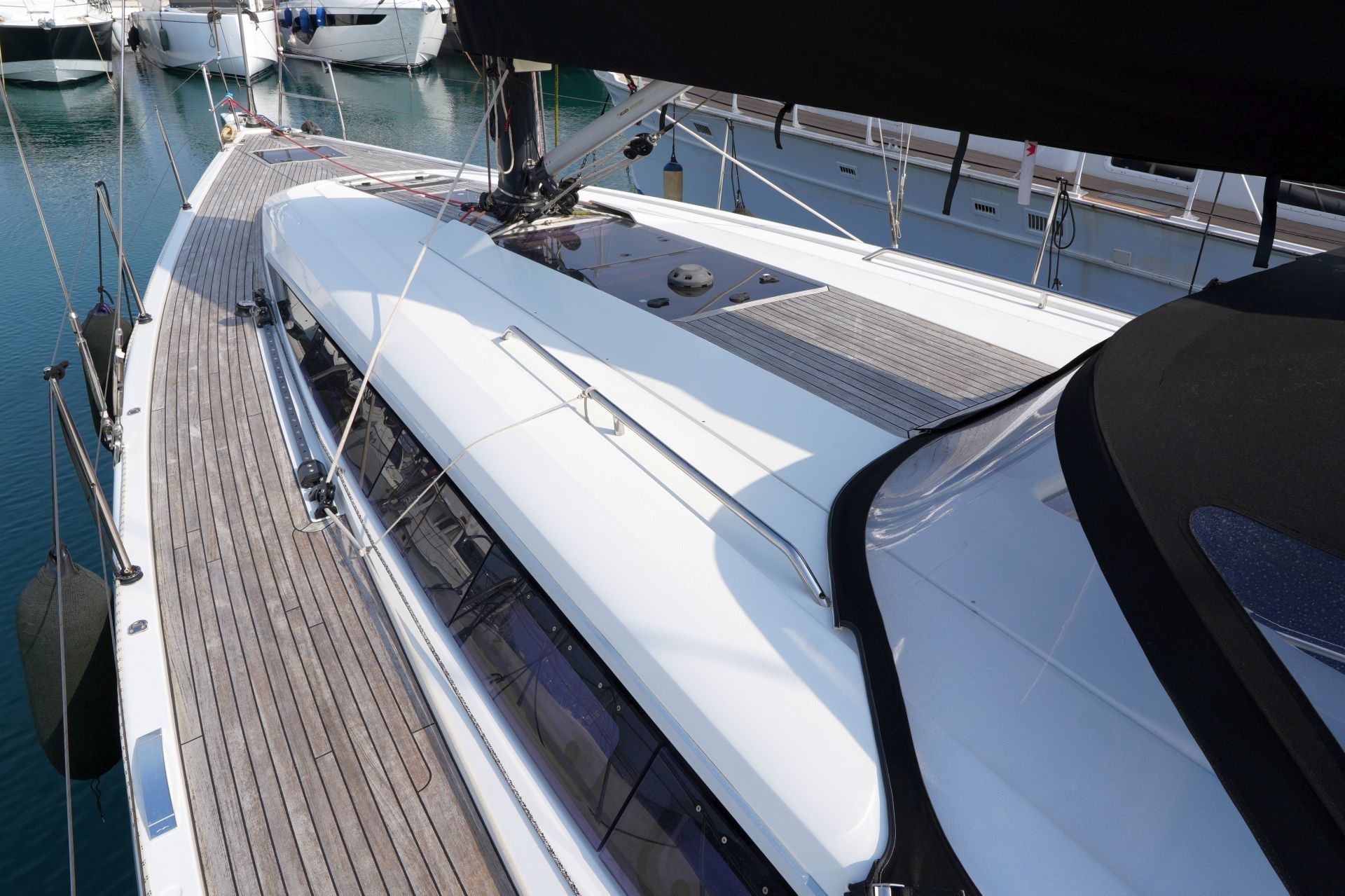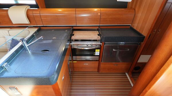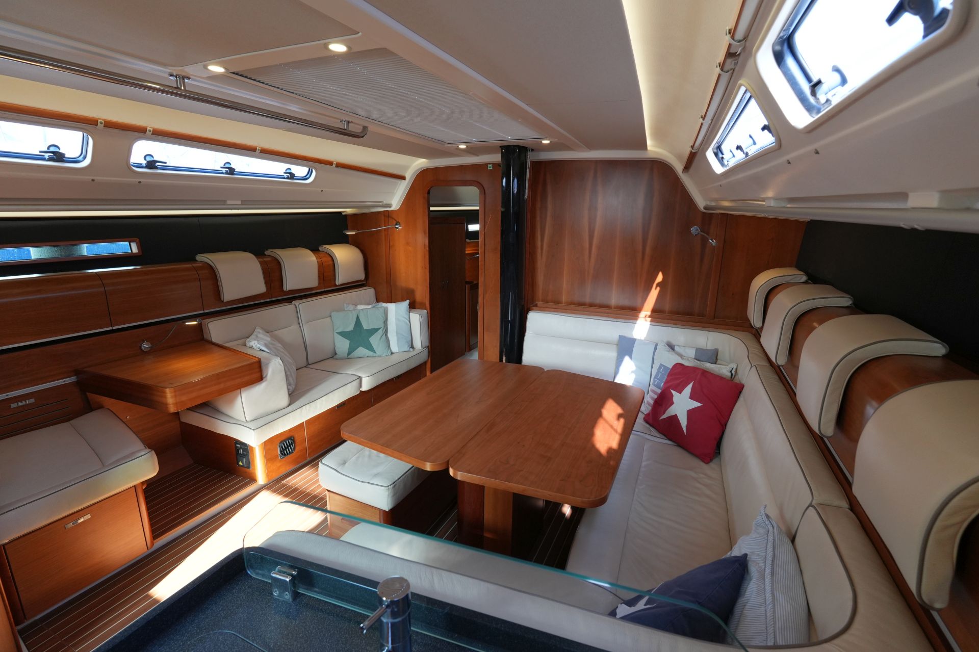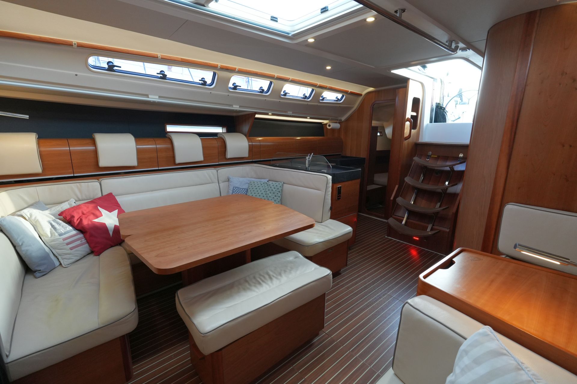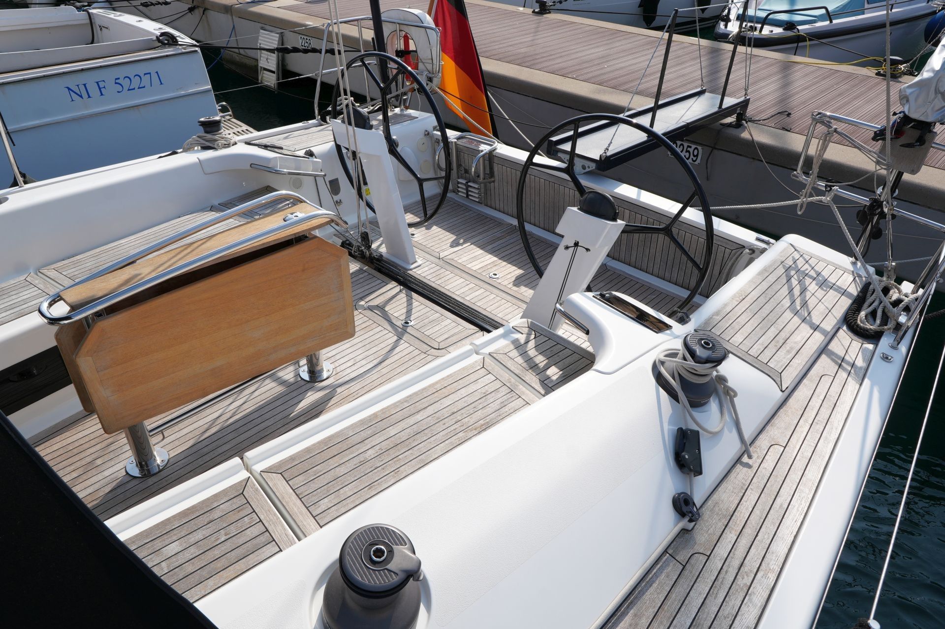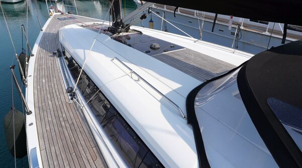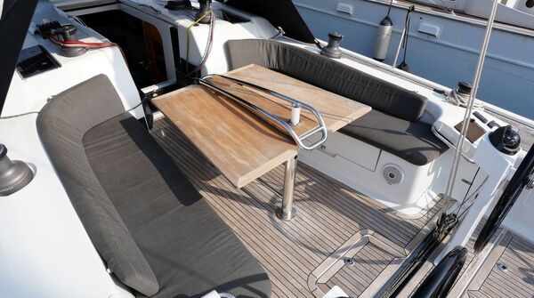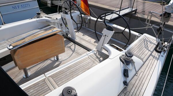 Zum Verkauf steht eine Dehler 46 Competition Baujahr 2015 mit Pauger Kohlefaserrigg (Mast, Baum und Salinge in Carbon, Stehendes Gut in Rod) und T-förmigem Sportkiel (Eisenfinne und Bleibombe, Tiefgang: ca. 2,50 m). Komplette Ausrüstungsliste mit ausfahrbarem Bugstrahlruder, zwei Lithium-Servicebatterien, Inverter, ausklappbarer Badeplattform, Motor-Upgrade auf VOLVO PENTA D2-75, elektrischer Fallwinsch, Teakdeck auf Laufdecks, Aufbaudach und im Cockpit, Edelstahl Ankergeschirr usw. Ausbau in Amerikanischer Kirsche. Der Rumpf wurde 2021 in Anthrazit Metallic foliert. Die Dehler 46 Competition liegt in Südfrankreich und wird regelmäßig technisch gewartet und gepflegt. Sie kann nach Absprache besichtigt werden und ist kurzfristig lieferbar.