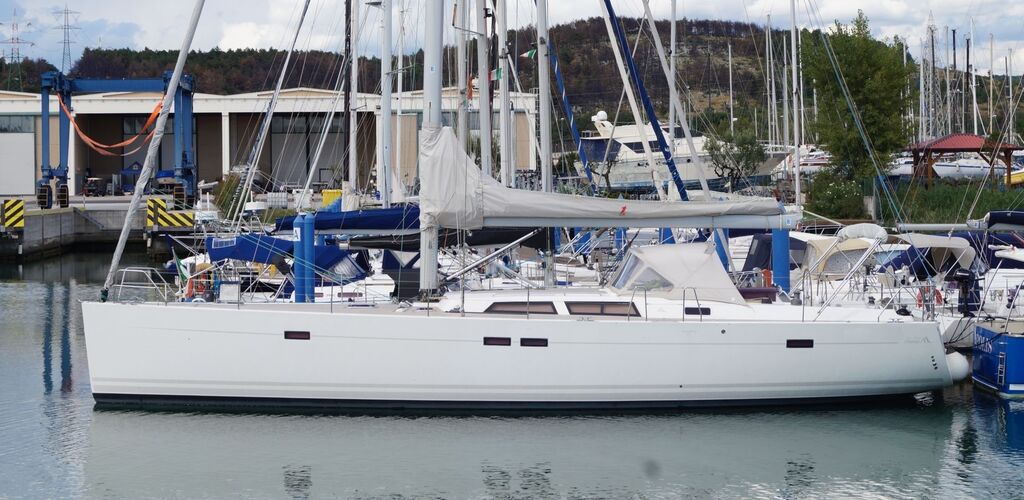Hervorragend gepflegtes, komplett ausgerüstetes Eignerschiff aus erster Hand (keine Charter). Umfangreiche Spezifikation inkl. umfangreicher, exklusiver Segelgarderobe von ONE-Sails, ausfahrbarem Bugstrahlruder, hydraulischer Gangway, elektrischen Winschen, Dieselgenerator usw. Zahlreiche Ersatzinvestitionen in den vergangenen Jahren. Liegeplatz: Italien/Adria.