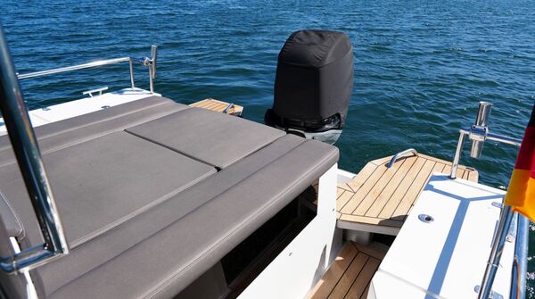 26. Mai 2025 | GebrauchtbooteGeländegängige Allzweckwaffe zur See: Ob als Daycruiser, Arbeits- oder Angelboot, Badeinsel oder Weekender - Die Axopar 28 Cabin AC kann alles. Mit ihrem schlanken, scharf aufgekimmten Rumpf kann sie bei übelsten Bedingungen sicher fahren. Das feste Steuerhaus mit vier Sitzen schützt die Crew bei miesem Wetter und bietet einen ungestörten 360° Rundumblick und die breite Doppelkoje in der Achterkabine lädt zu Übernachtungen auf Touren ein. Vorn im Steuerhaus befindet sich sogar eine kleine Nasszelle mit Marine-WC und Waschbecken. Zudem macht die Axopar 28 Cabin AC dank des großzügigen Platzangebotes an Deck inkl. Sonnenliege auf der Achterkabine und Sitzgruppe im Vorschiff auch als Badeinsel vor Anker eine gute Figur. Die größte verfügbare Einzelmotorisierung mit einem MERCURY 350 PS Außenborder katapultiert die Axopar auf Höchstgeschwindigkeiten weit jenseits der 40 Knoten und der Stufenrumpf sorgt für eine ökonomische Marschfahrt.
