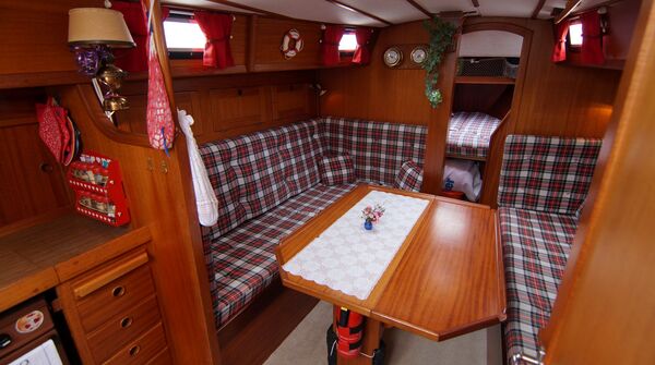 Auszug aus der Spezifikation: Neuer SELDEN Rollmast von 2011 mit durchgelattetem Großsegel, VOLVO PENTA MD2040 38 PS/28 KW von 2008 (ca. 1.800 Betriebstunden), Teakdeck überall, Davits und GFK-Dinghy, Baujahr: 1981, Liegeplatz: Nordsee/Elbe.