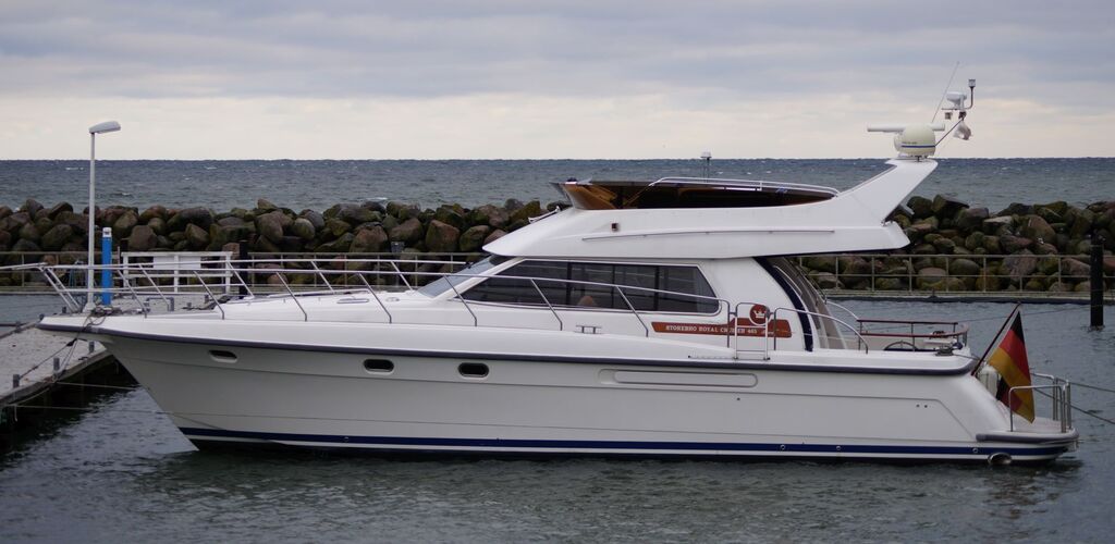 04. November 2016 | GebrauchtbooteNeu in unserem Gebrauchtboot-Portfolio: Storebro 465 Biscay (SRC 465 Biscay) von Storebro Royal Cruisers aus Schweden. Luxuriös ausgestattete Flybridge-Motoryacht in 2 Kabinen-Layout mit zwei Nasszellen. Baujahr: 2002. Seegängiger, stäbiger Cruiser mit eleganten Linien. Hochwertiger skandinavischer Bootsbau und ausgereifte Installationen. Diese Storebro 465 Biscay (Baunummer: #012) ist das letzte und jüngste Exemplar dieser Serie.