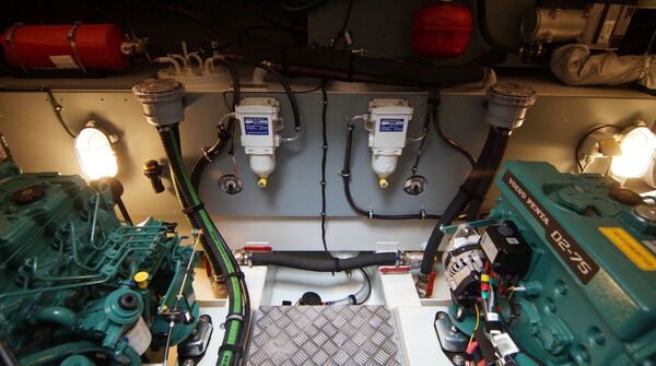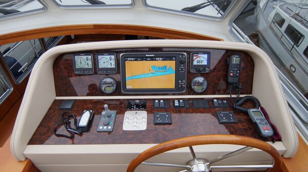 Die Yacht ist sehr komplett und sinnvoll ausgerüstet. Die Spezifikation enthält u.a. Bug- und Heckstrahlruder, Warmwasser-Heizungssystem mit Radiatoren in allen Räumen inkl. Steuerhaus, elektrisch klappbarer Parkbügel (reduziert die Durchfahrtshöhe auf ca. 3,40 m), 22 mm Teakdeck auf Seitendecks, Badeplattform und im Cockpit, vollgefederte GRAMMER Sportbootsitze am Steuerstand usw. Die Yacht hat das neue Heck mit zwei bequemen Treppen vom Achterdeck zur Badeplattform.