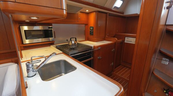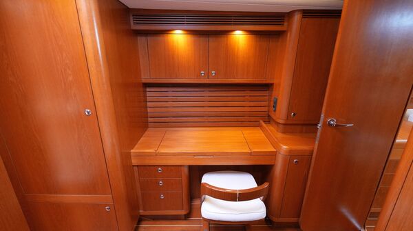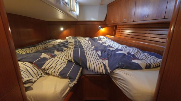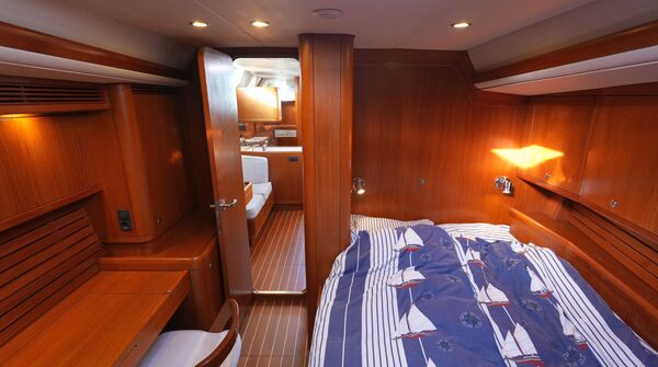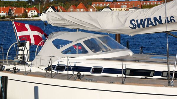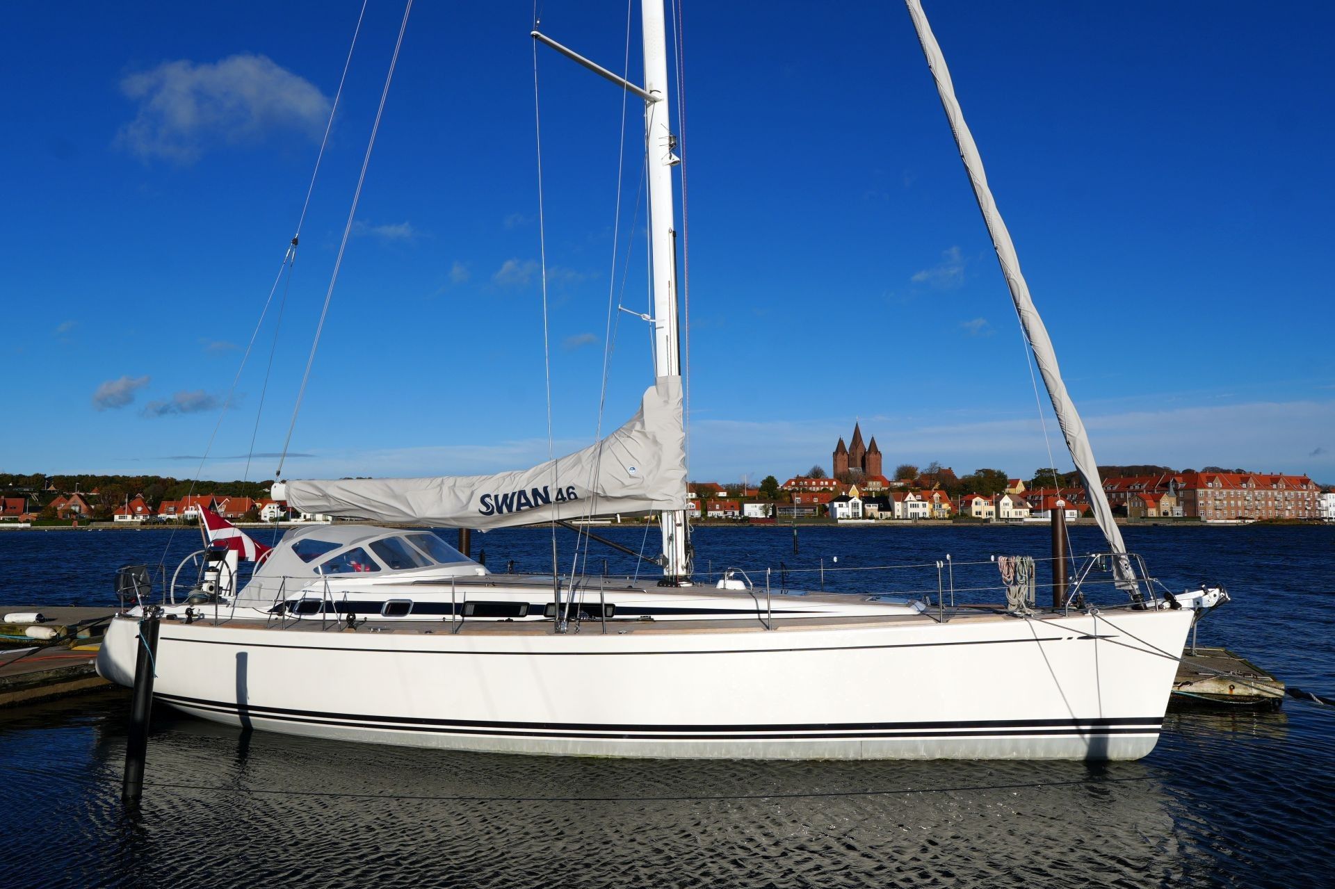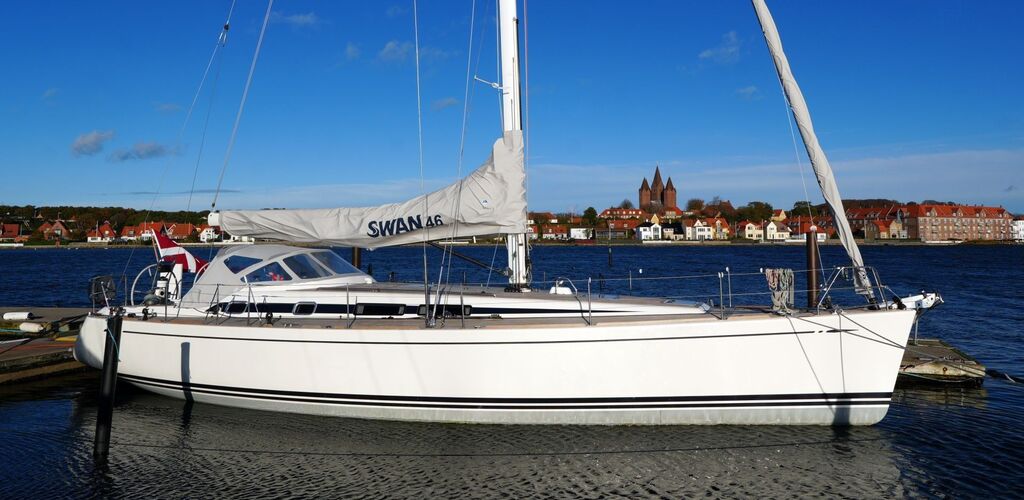 Diese Nautor Swan 46 MK III wurde mit dem 2 Kabinen-Layout ausgebaut und in Teilen für den ersten Eigner individualisiert: So wurde die Achterkabine vergrößert, die Eignerkoje verbreitert und anstelle der beiden Sessel mit Kaffeetisch in der Mitte erhielt die Yacht einen echten Kartentisch vorn im Salon am Hauptschott. Umfangreiche Spezifikation inkl. ausfahrbarem Bugstrahlruder, sechs elektrischen LEWMAR-Winschen, Dieselgenerator, Inverter, Watermaker usw. Komplett neue BROOKS & GATEHOUSE Navigationselektronik im Jahr 2024. Liegeplatz: Westküste der dänischen Insel Sjælland.