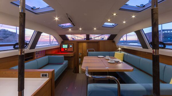 Technische Daten Pilot Saloon 58: LüA: 17,70 m, LWL: 15,60 m, Breite: 4,95 m, Tiefgang: 2,30 m, Kurzkiel: 2,10 m, Performance-Kiel: 2,50 m, Verdrängung: ca. 21,5 to, Maschine: YANMAR 110 PS, Frischwasser: 830 l, Diesel: 560 l, Segelfläche: Großsegel: 79 m², Genua: 54 m².