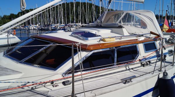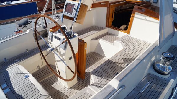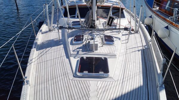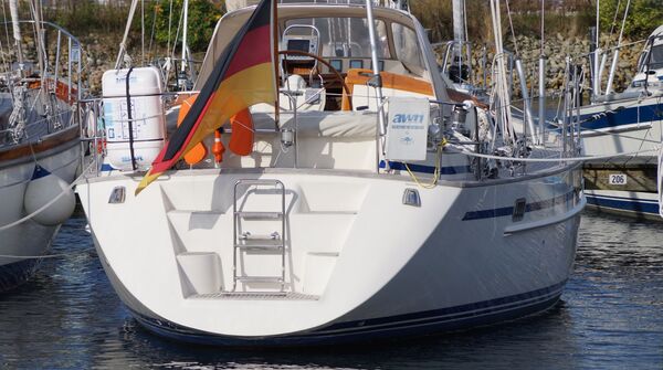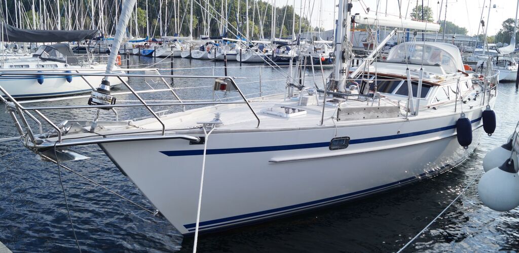 Auszug aus der Spezifikation: YANMAR 4JH3-TE 75 PS, Bugstrahlruder, elektrischer Rollmast, Bugstrahlruder, vier elektrische ANDERSEN Winschen, Selbstwendefock, schwedischer Bugspriet in Teak und Edelstahl, Edelstahl Ankergeschirr. Liegeplatz: Deutsche Ostseeküste.