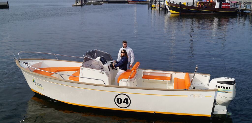 Bei der RHEA 27 Open handelt es sich um die Limited Edition, die die Werft anläßlich des Starts zur Rhoute du Rhum 2015 in St. Malo aufgelegt hat. Vier dieser Schiffe wurden als offizielle Begleit- und Presse-Boote eingesetzt. Neben dem auffälligen Dekor zeichnet sich diese Version vor allem durch den 250 PS SUZUKI Außenborder aus, der für reichlich Fahrspaß sorgt!