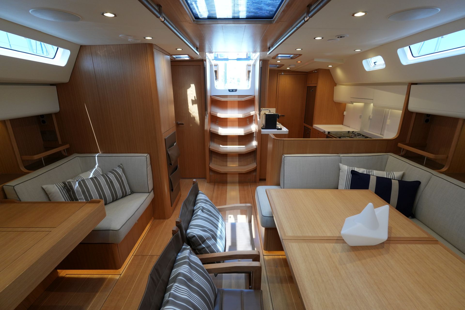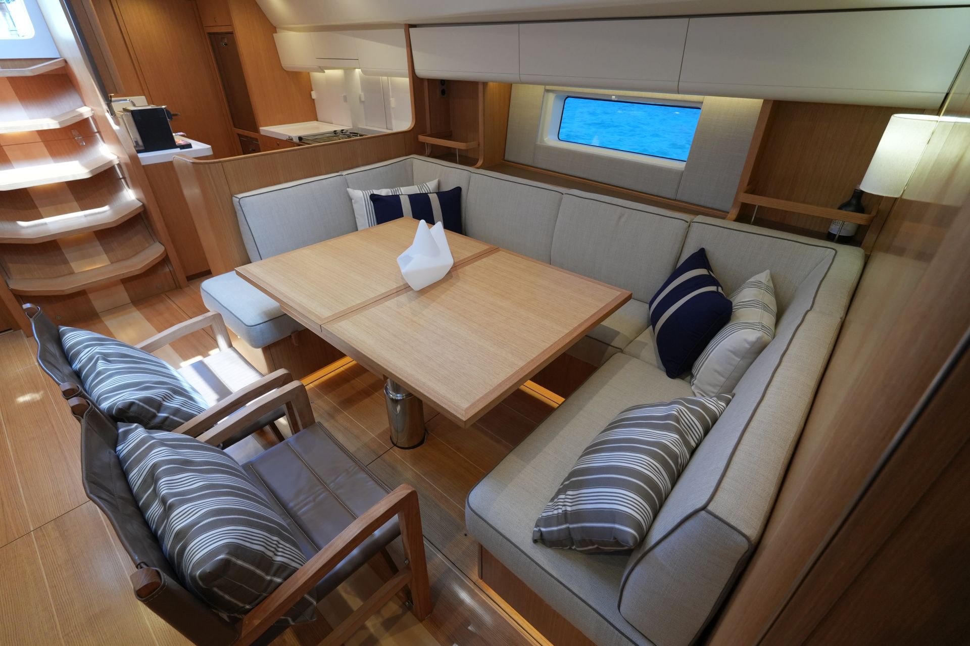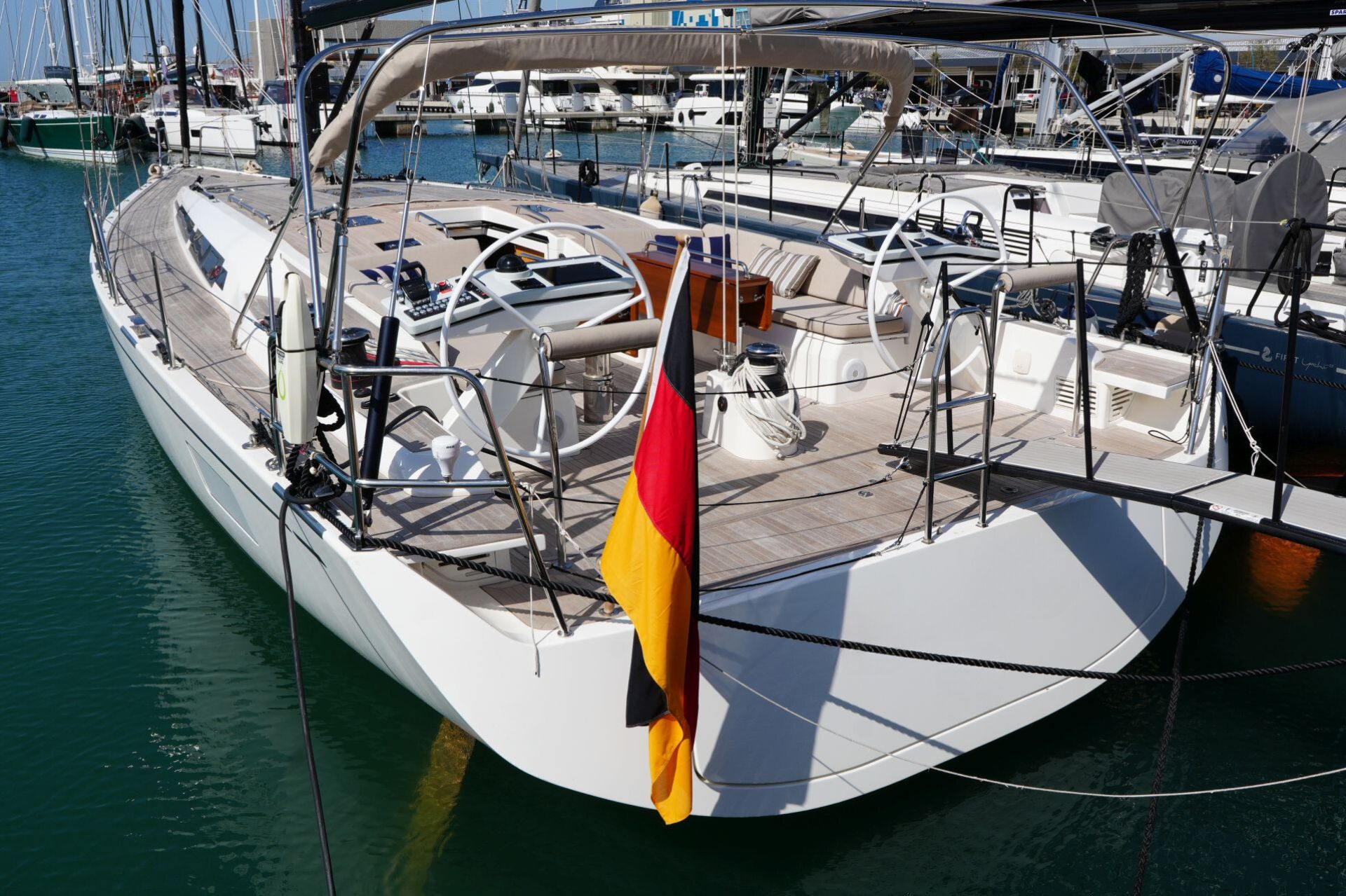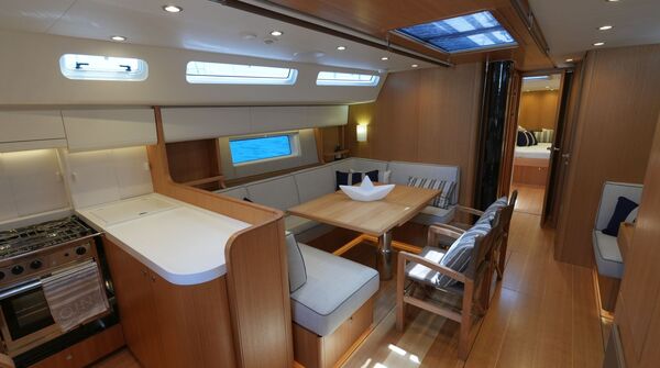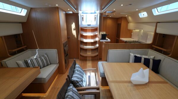 Diese Swan 55 wurde erst im Frühjahr 2022 an ihren Eigner übergeben und ins Mittelmeer überführt. Seitdem wurde sie nur etwa zwei Wochen gesegelt und ansonsten kaum bewegt oder bewohnt. Ein professioneller Yachtservice kümmert sich vor Ort um die Yacht, so daß sie sich in einem praktisch neuwertigen Zustand befindet. Herausragendes Merkmal dieser Yacht ist der hydraulische Kohlefaser Rollmast von SELDEN mit kompletter Rigg-Hydraulik für Vorsegel-Rollanlagen, Fallspannung, Achterstag und Kicker. Das Segel-Handling wird weiter vereinfacht durch eine Selbstwendefock und elektrische Winschen. Umfangreiche Komfortausstattung mit Dieselgenerator, Lithium-Servicebatterien, Bug- und Heckstrahlruder, Waschtrockner, Klimaanlage, Dieselheizung, Watermaker und komplette B&G-Navigation inkl. vier Kartenplotter, Radar, AIS und Satelliten-Kommunikation. Ausbauvariante "Swan Soul"-Mood in heller europäischer Eiche. Die EU-Mehrwertsteuer ist nicht bezahlt, die Yacht kann also exportiert oder durch eine Firma erworben werden.
