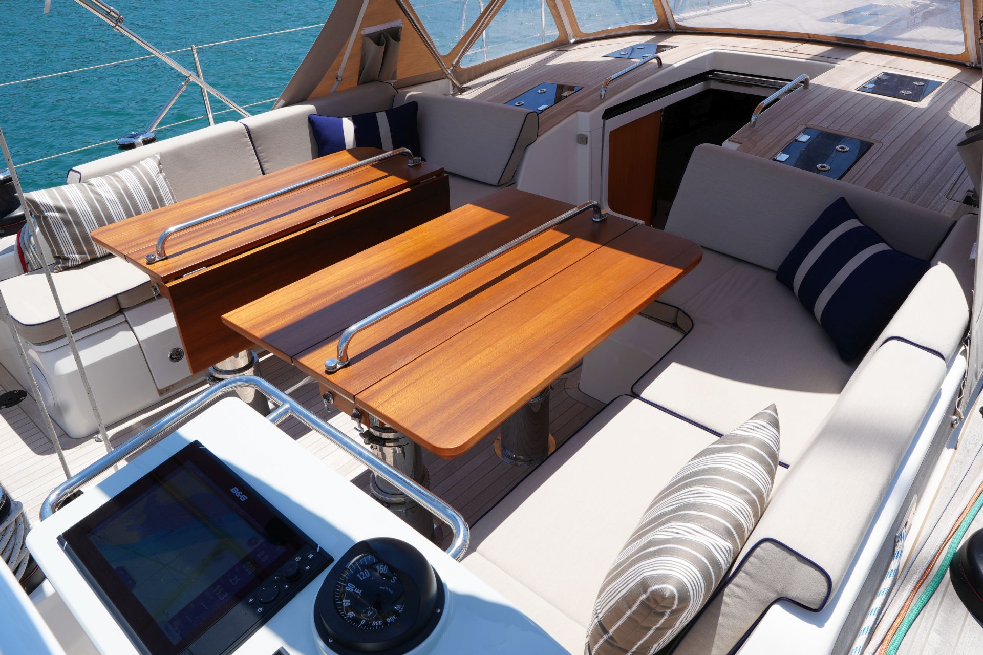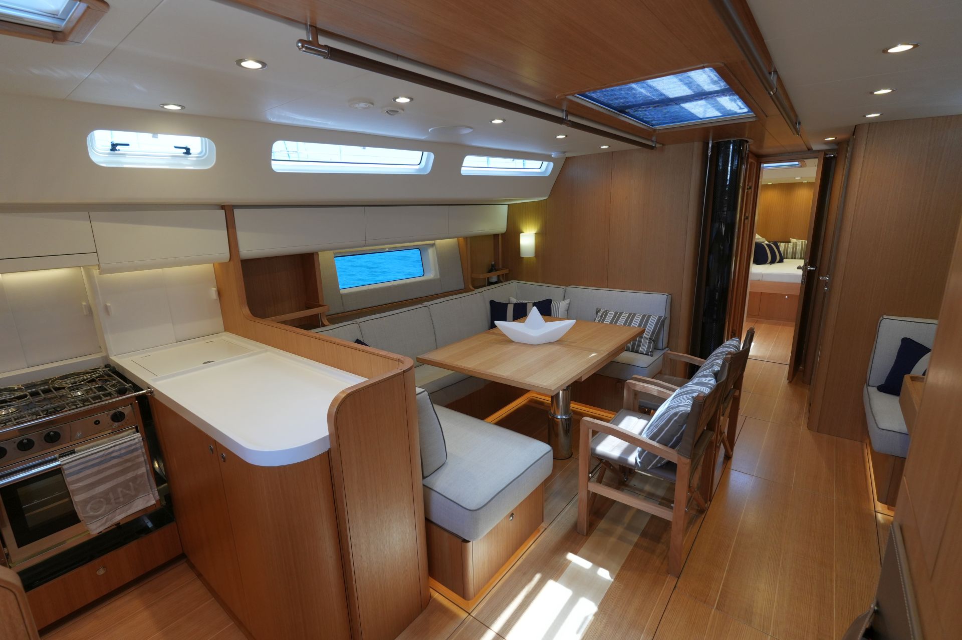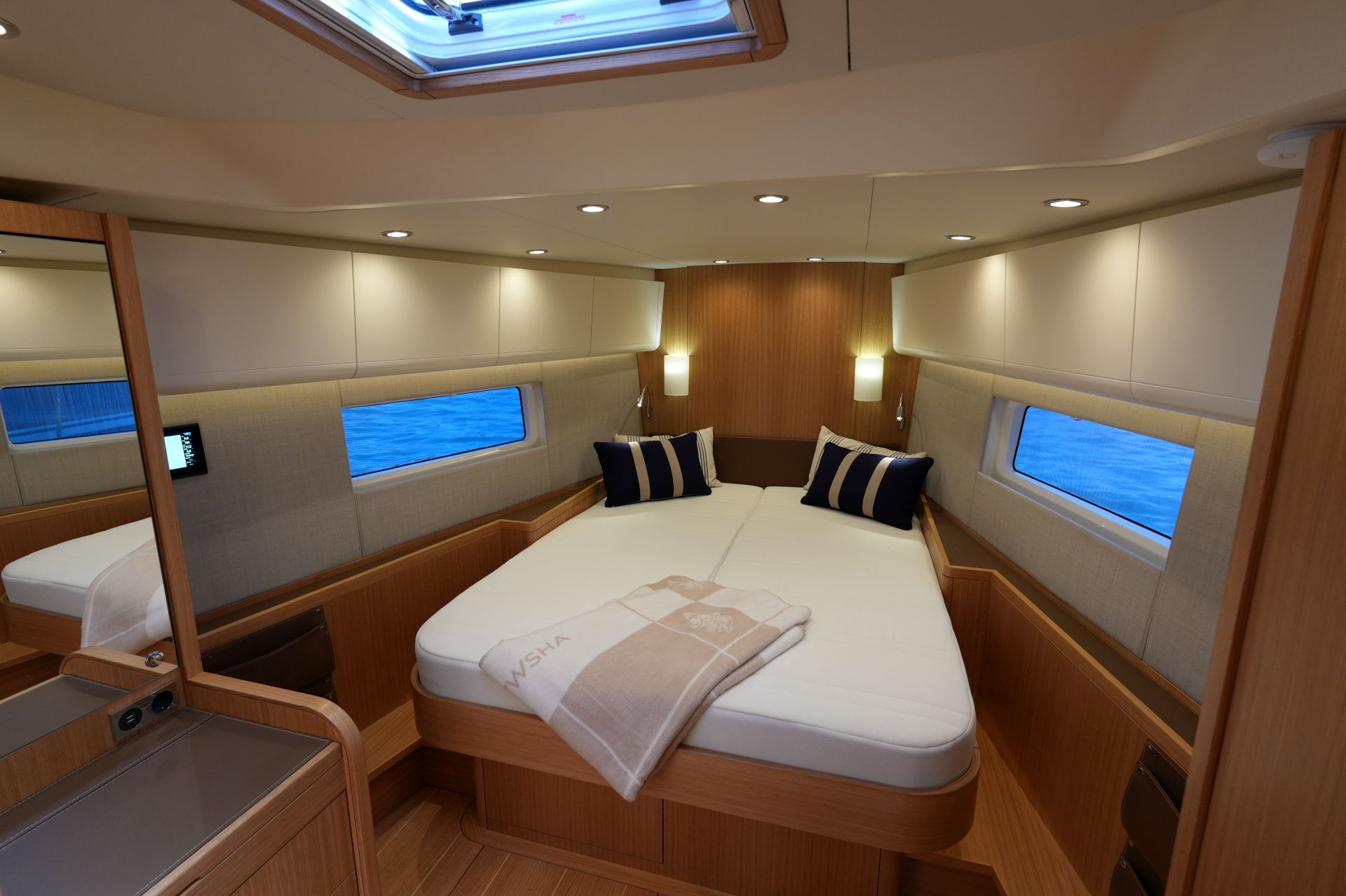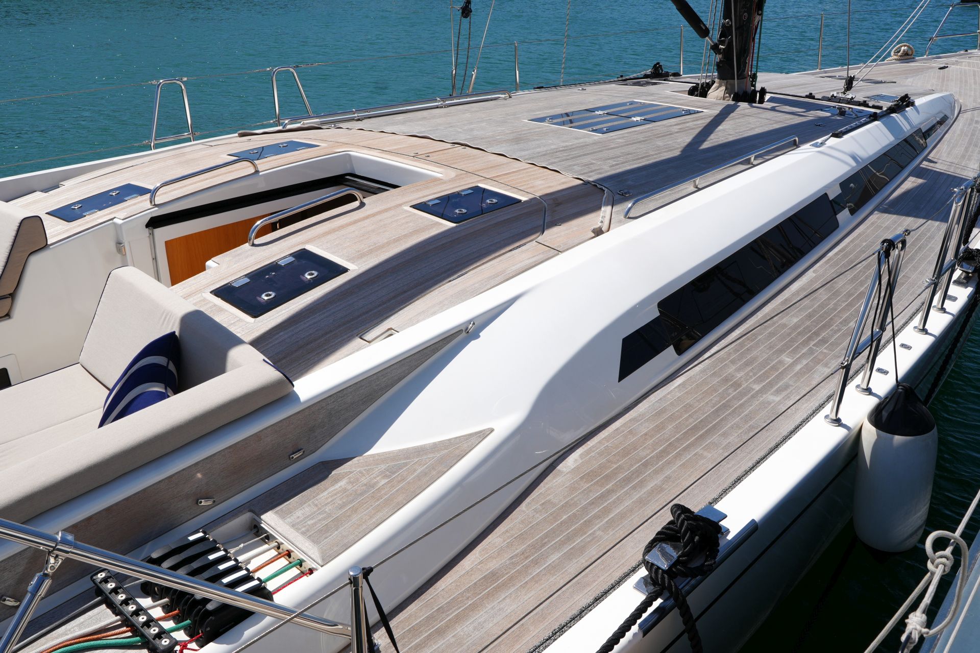 Diese Swan 55 wurde erst im Frühjahr 2022 an ihren Eigner übergeben und ins Mittelmeer überführt. Seitdem wurde sie nur etwa zwei Wochen gesegelt und ansonsten kaum bewegt oder bewohnt. Ein professioneller Yachtservice kümmert sich vor Ort um die Yacht, so daß sie sich in einem praktisch neuwertigen Zustand befindet. Herausragendes Merkmal dieser Yacht ist der hydraulische Kohlefaser Rollmast von SELDEN mit kompletter Rigg-Hydraulik für Vorsegel-Rollanlagen, Fallspannung, Achterstag und Kicker. Das Segel-Handling wird weiter vereinfacht durch eine Selbstwendefock und elektrische Winschen. Umfangreiche Komfortausstattung mit Dieselgenerator, Lithium-Servicebatterien, Bug- und Heckstrahlruder, Waschtrockner, Klimaanlage, Dieselheizung, Watermaker und komplette B&G-Navigation inkl. vier Kartenplotter, Radar, AIS und Satelliten-Kommunikation. Ausbauvariante "Swan Soul"-Mood in heller europäischer Eiche. Die EU-Mehrwertsteuer ist nicht bezahlt, die Yacht kann also exportiert oder durch eine Firma erworben werden.