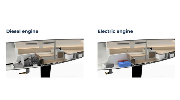 Für sichere Hafenmanöver oder als Flautenschieber kommt auf der Saffier SE 28 Leopard wahlweise ein Mitek PD10 48 V/7,5 KW Elektro-Podantrieb und einer 48 V/100 Ah Lithium-Batterie oder ein YANMAR 2YM15 15 PS Einbaudiesel zum Einsatz.